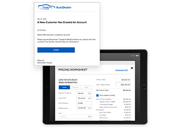 Not every deal starts online. Connect your walk-in traffic with the MotoCommerce platform in one easy step, and give them the gift of omni-channel retail. Enable your customers to finish their deal at home with a dynamic pricing worksheet, the ability to accessorize and add protection plans, submit their trade-in and more.